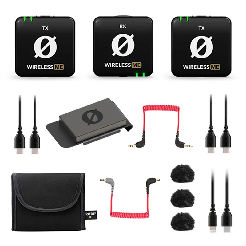Wireless ME مجموعه کاملی از لوازم جانبی دارد که به شما کمک می کند ضبط را به روش صحیح انجام دهید. این شامل چهار کابل برای اتصال به تلفن، تبلت، دوربین، کامپیوتر و موارد دیگر و همچنین دو شیشه جلوی خزدار برای ضبط در فضای باز و در شرایط باد است. همچنین یک کیسه دستی برای ذخیره ایمن بی سیم ME شما ارائه می شود.